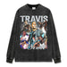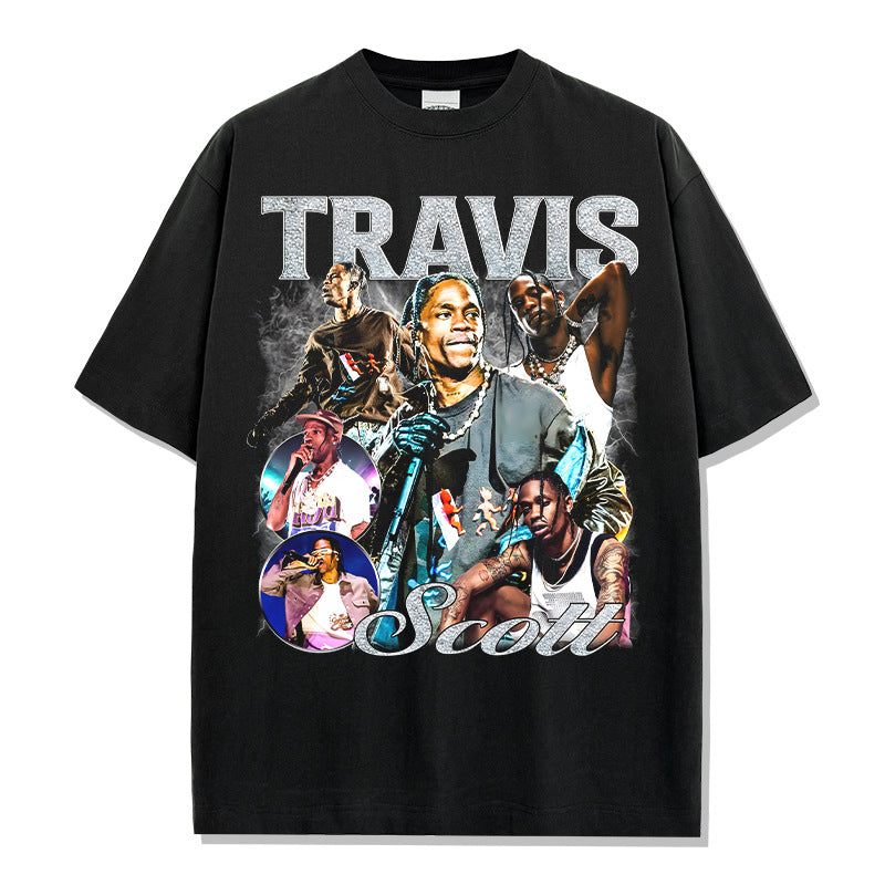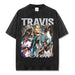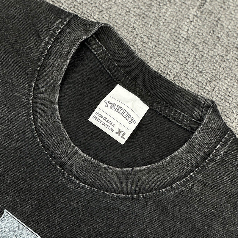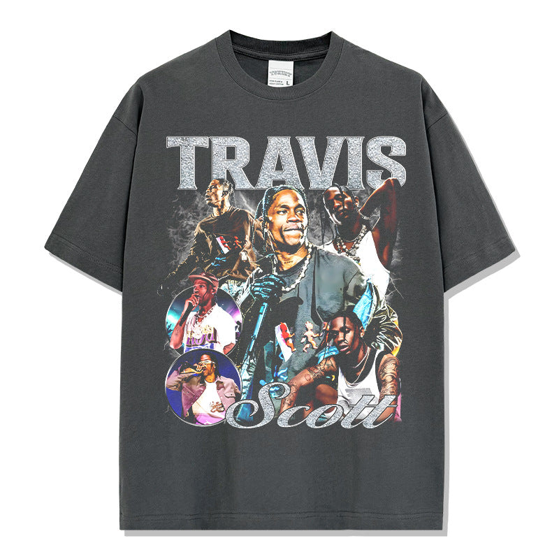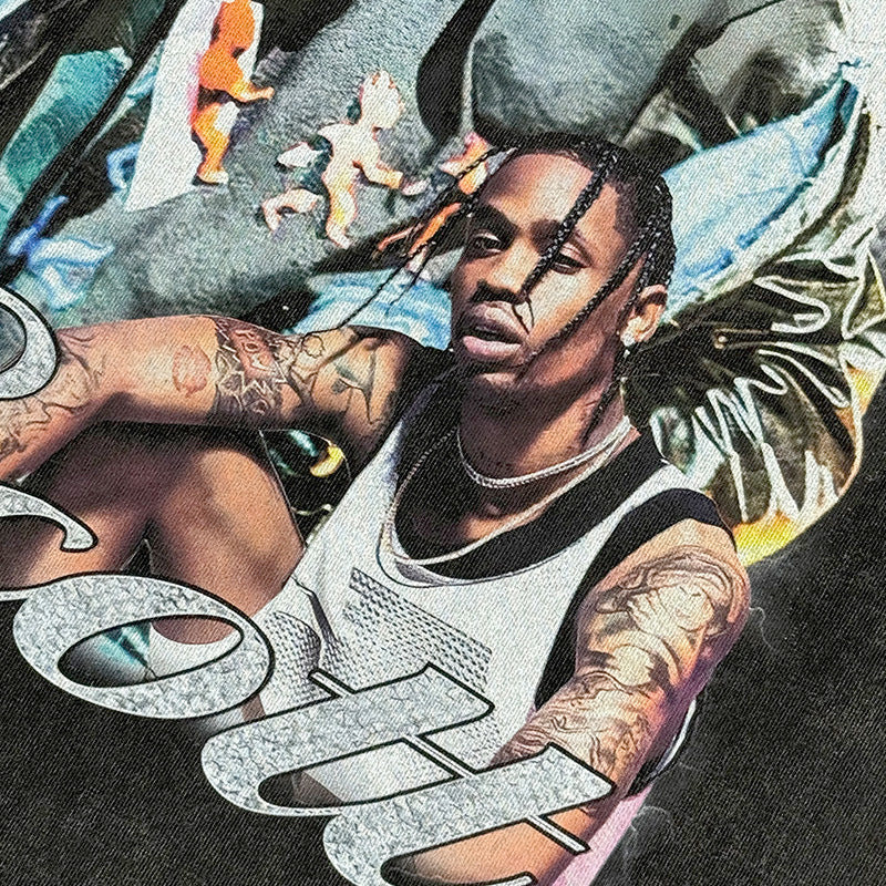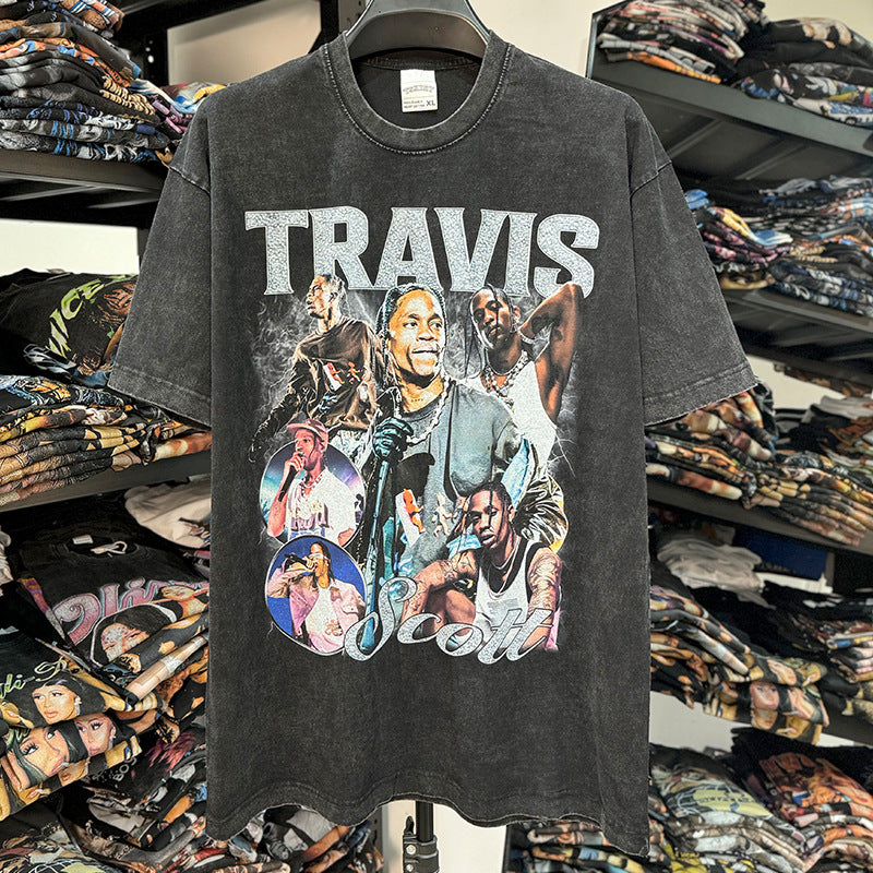 Vintage hip hop travis scott print short sleeve washed round neck heavy cotton small neckline t