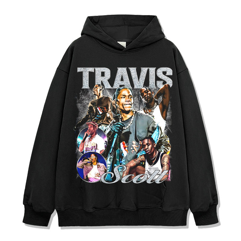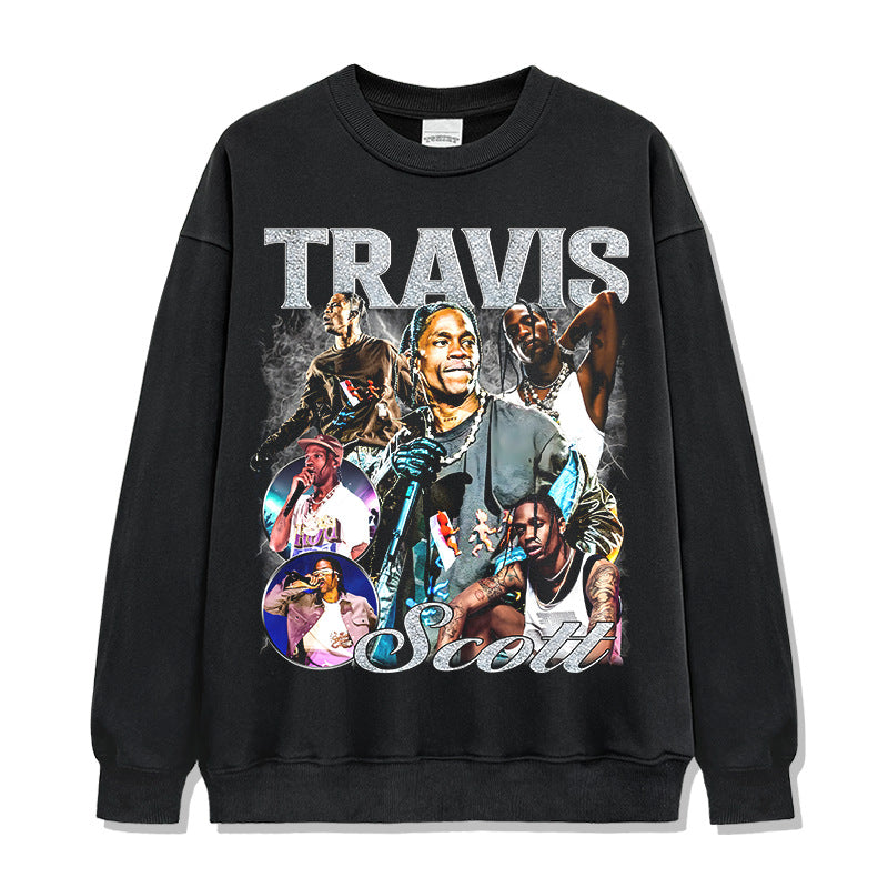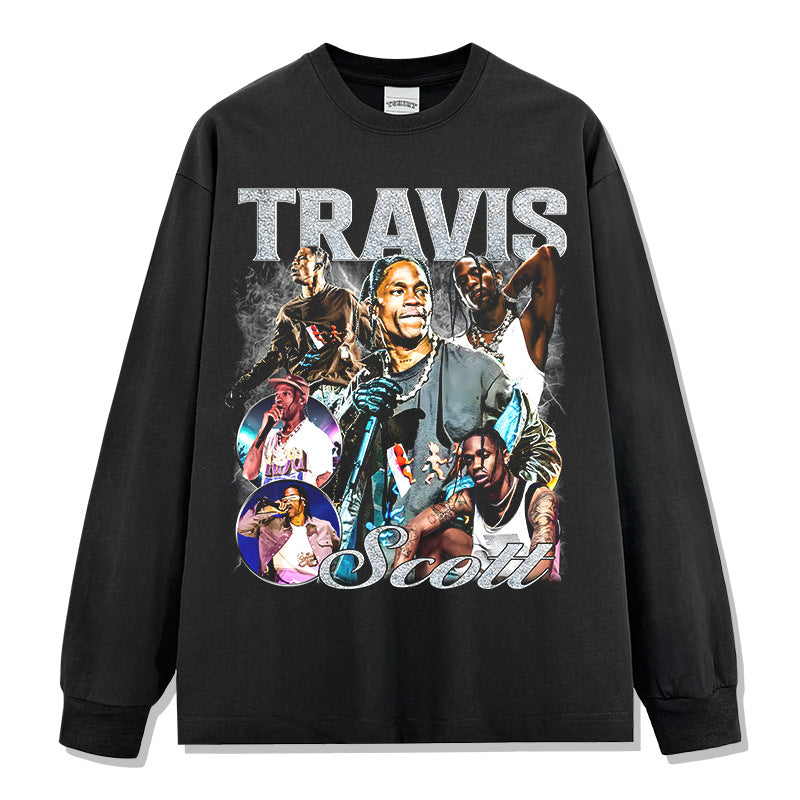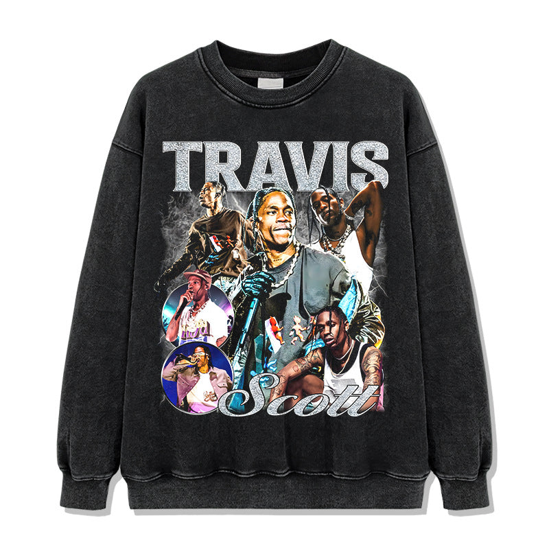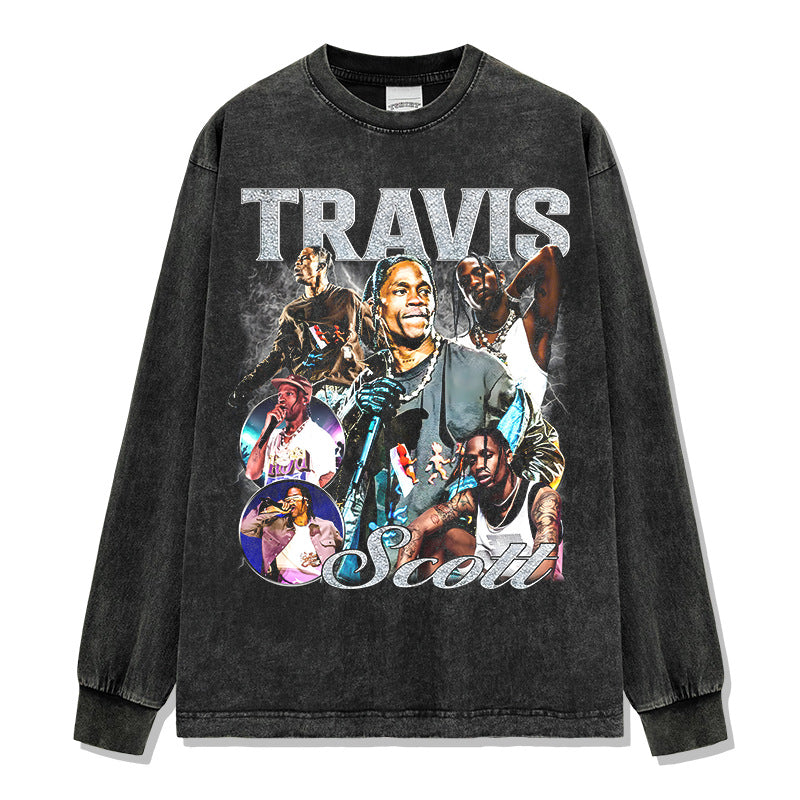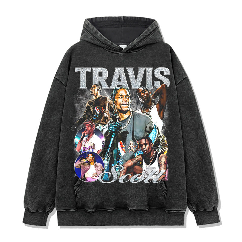 Vintage hip hop travis scott print short sleeve washed round neck heavy cotton small neckline t
