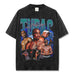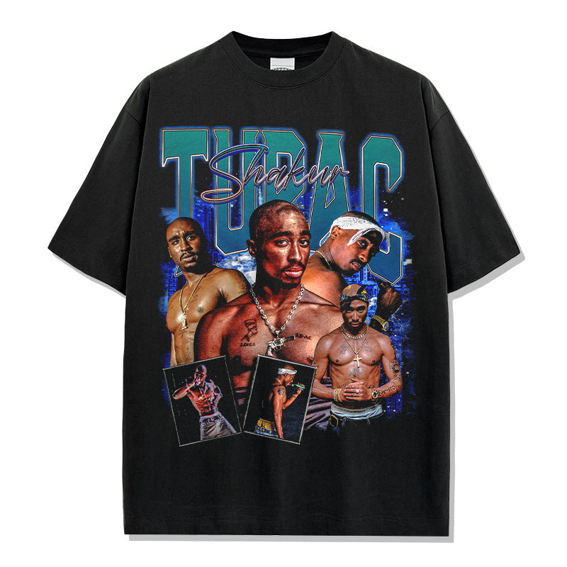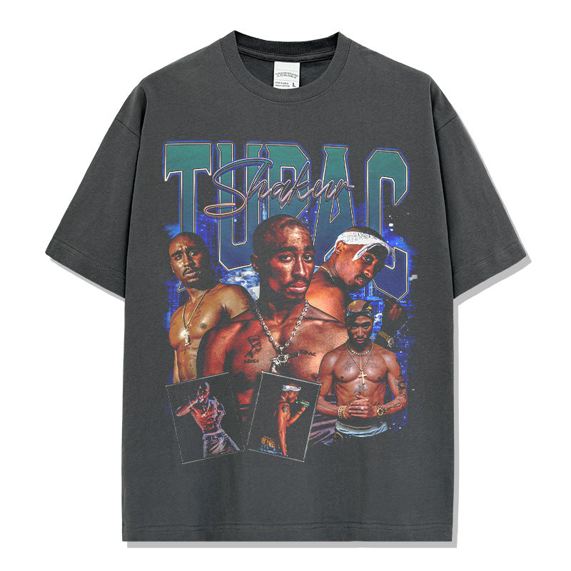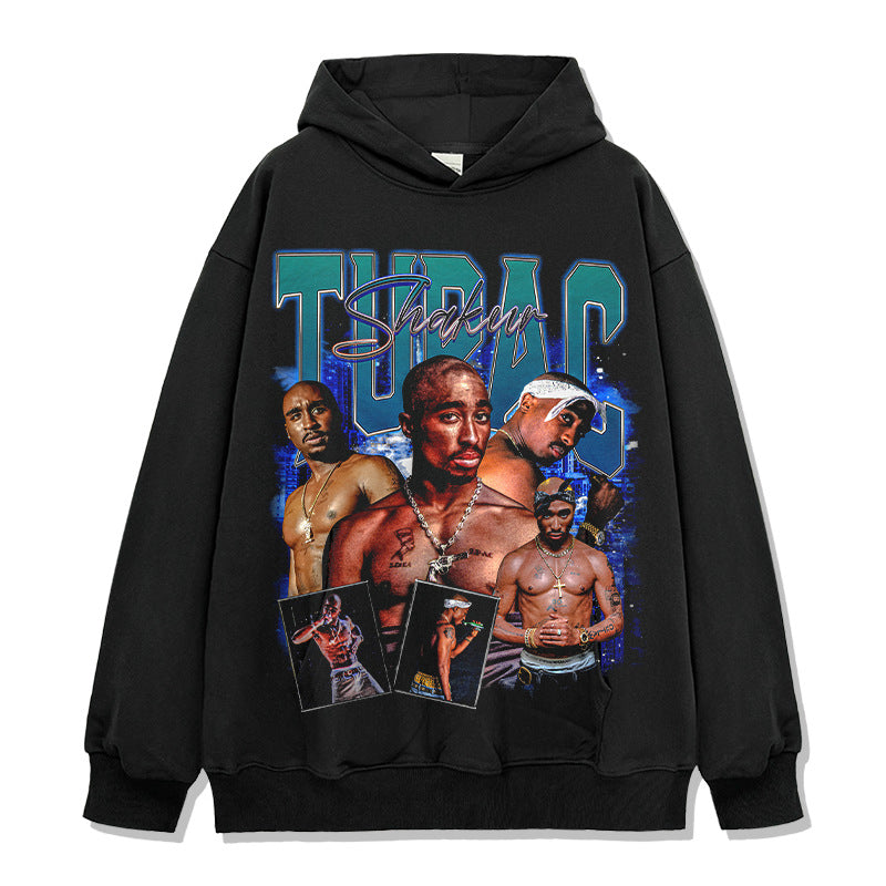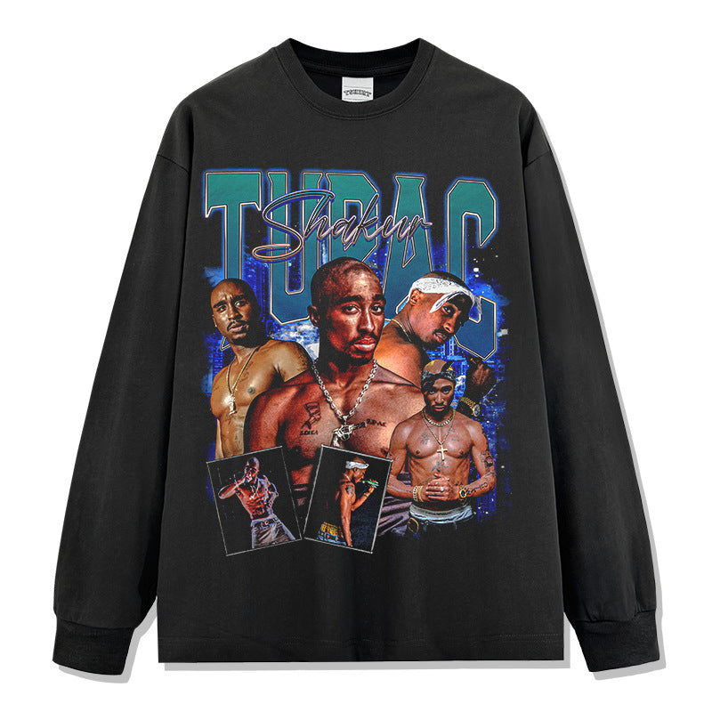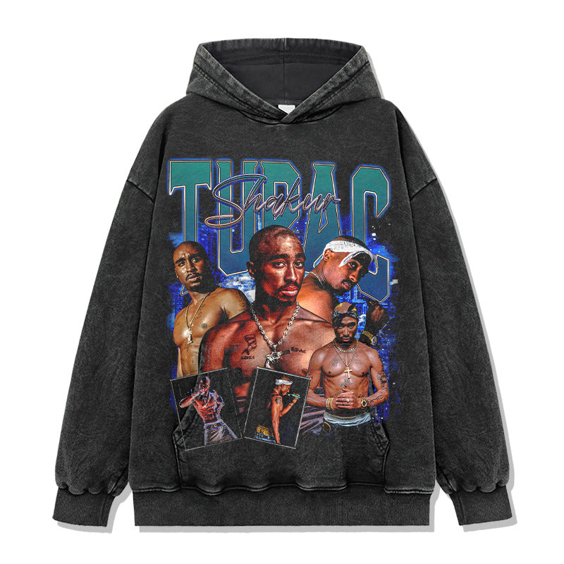 Vintage Hip Hop TUPAC Printed Short Sleeve T-Shirt Washed Old Long Sleeve Loose Hooded Sweater