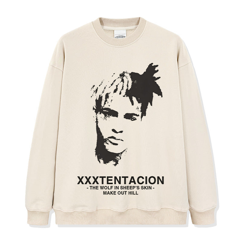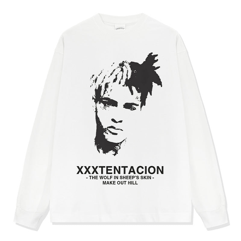 Vintage Hip Hop XXX Tentacion Printed Short Sleeve T-Shirt Cotton Crew Neck Long Sleeve Loose Hooded Sweater