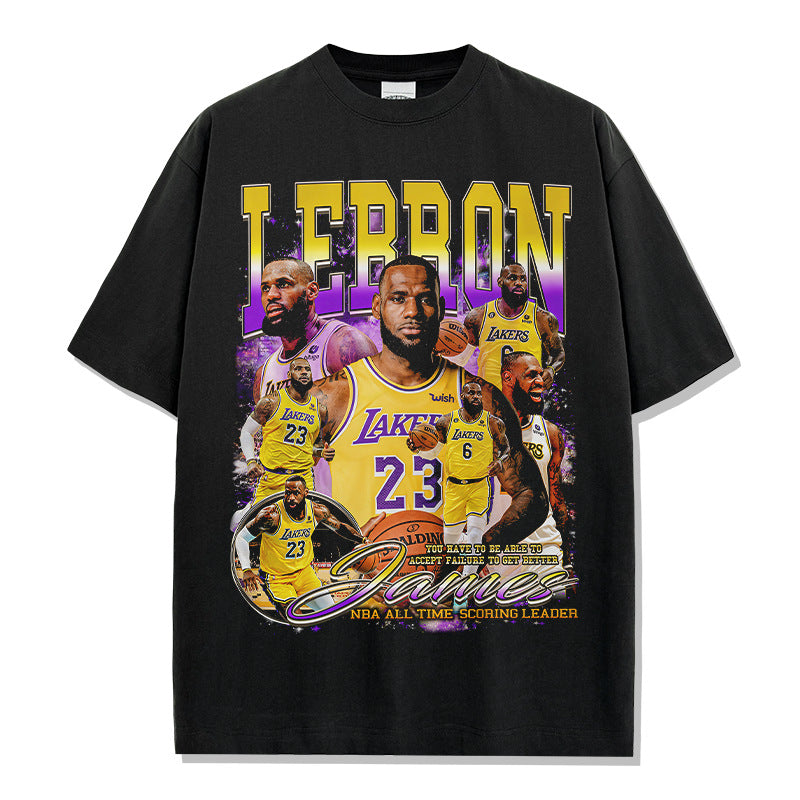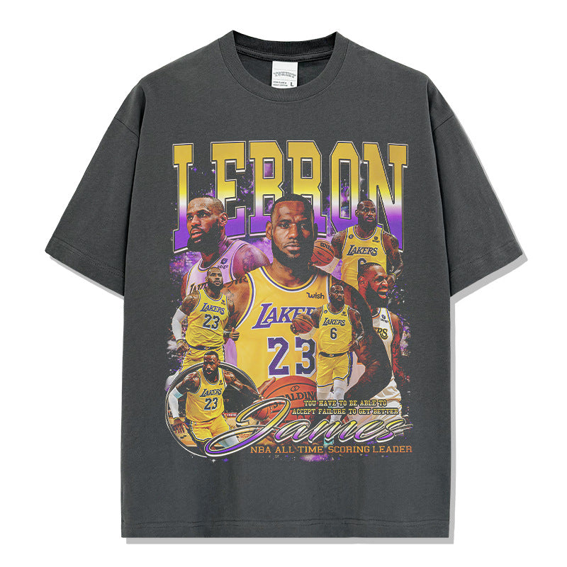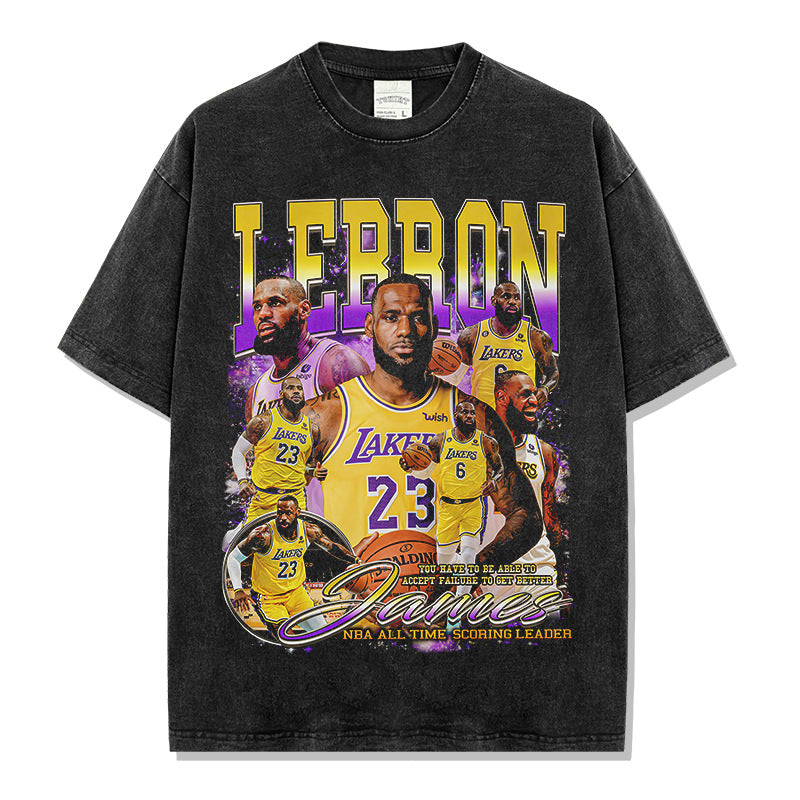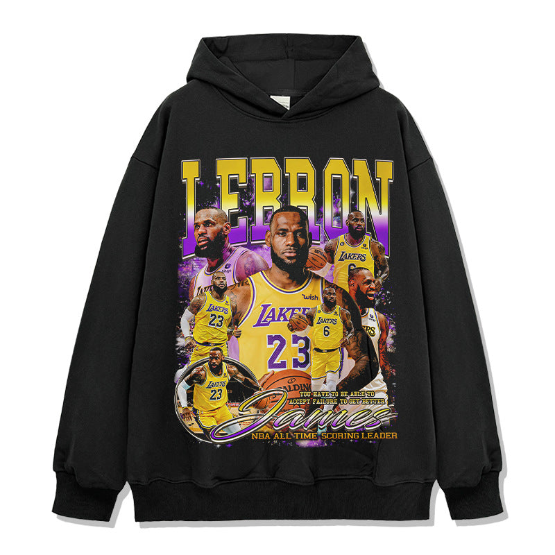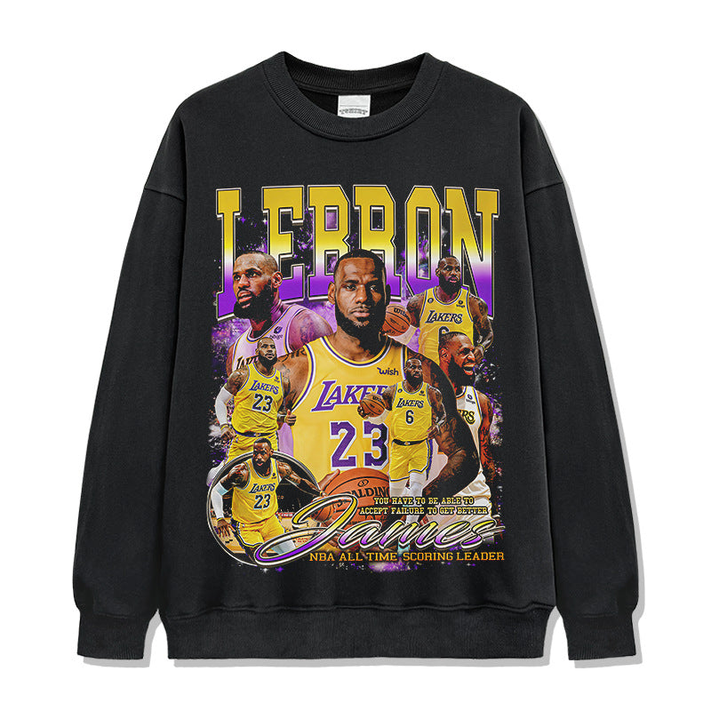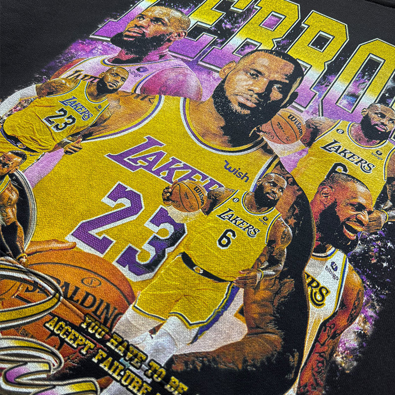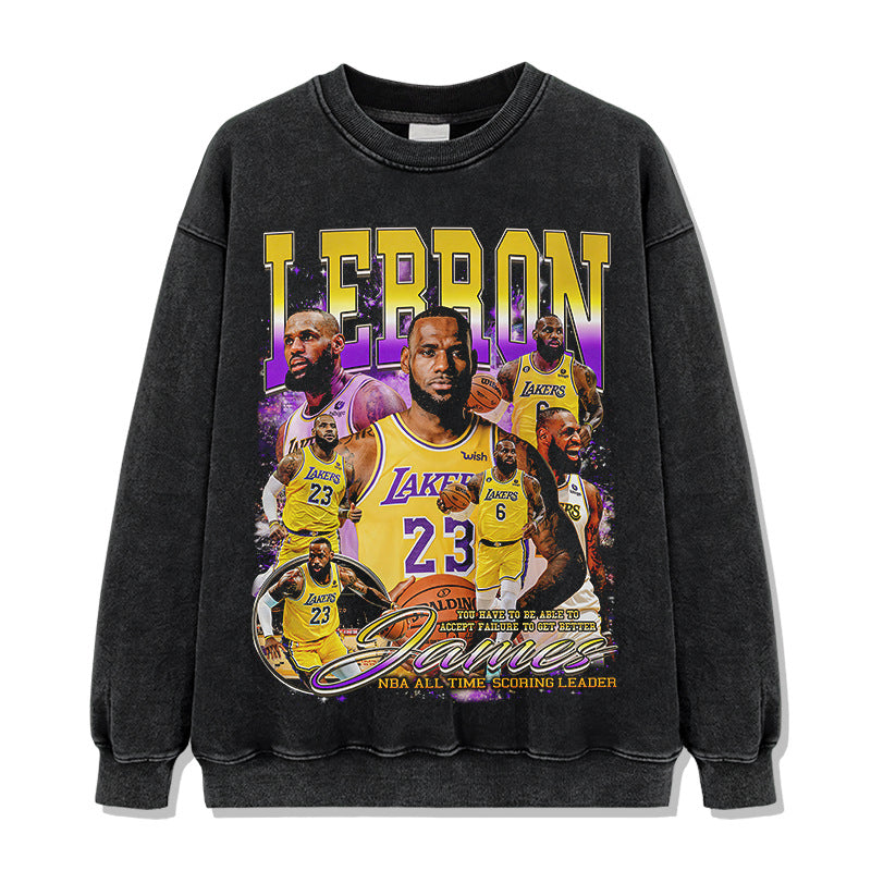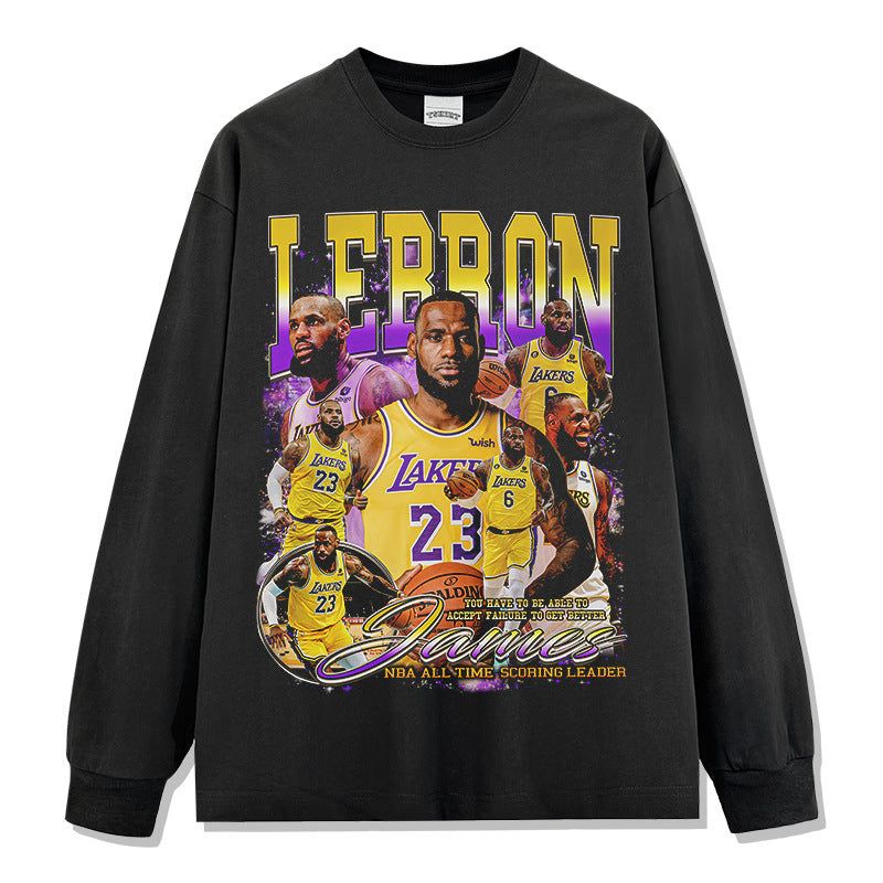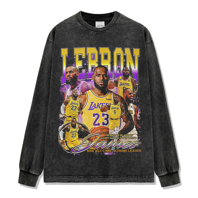 Vintage James James Printed Short Sleeve T-Shirt Washed Long Sleeve Crew Neck Loose Hooded Sweater Men