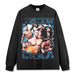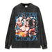 Retro-inspired graffiti letter prints and patch decoration at hem.
