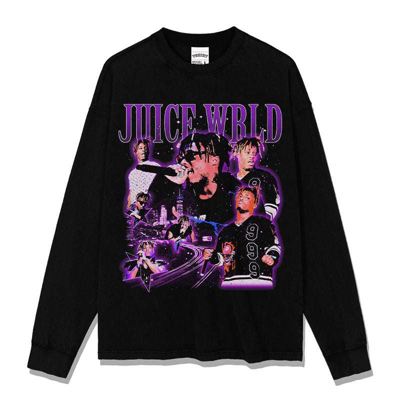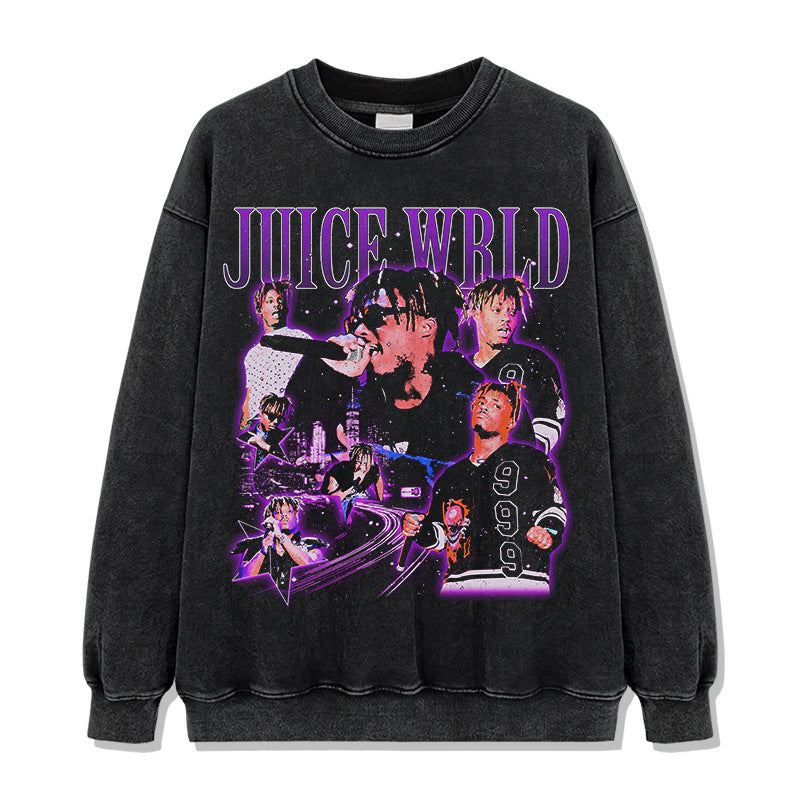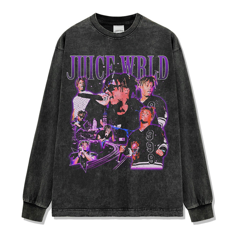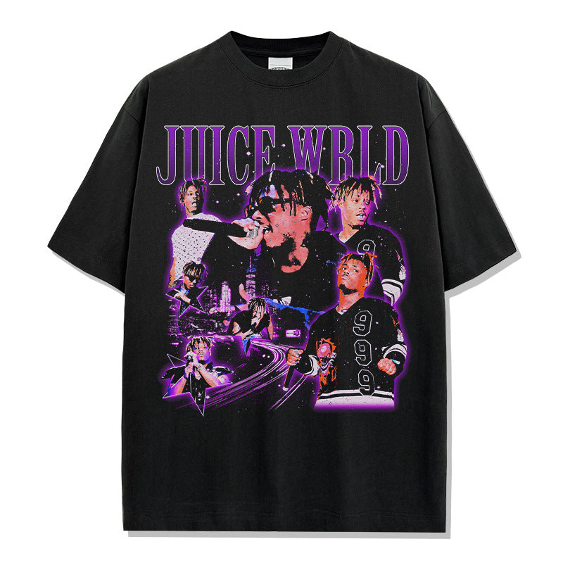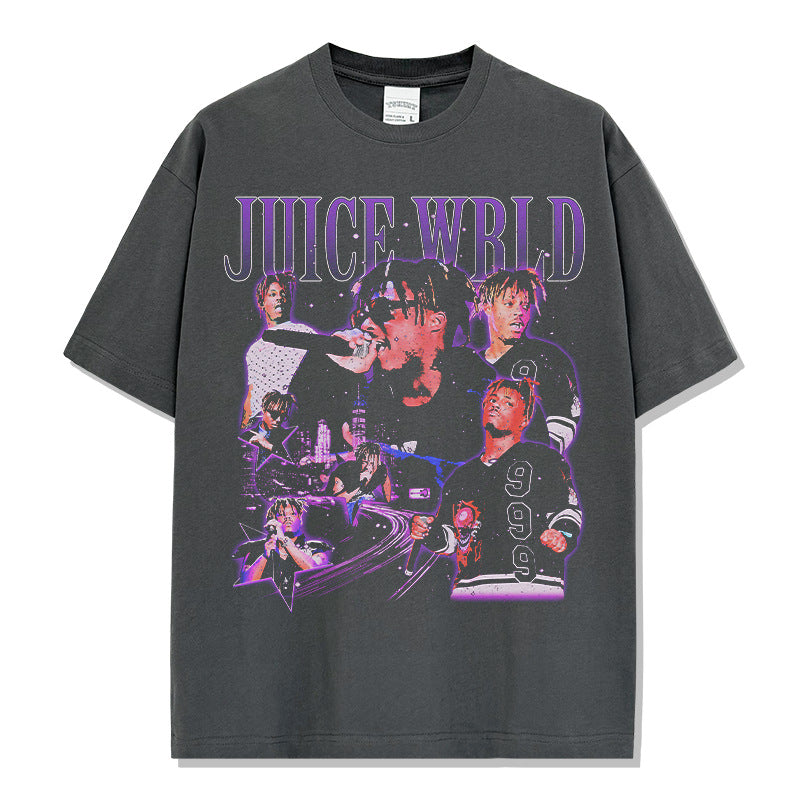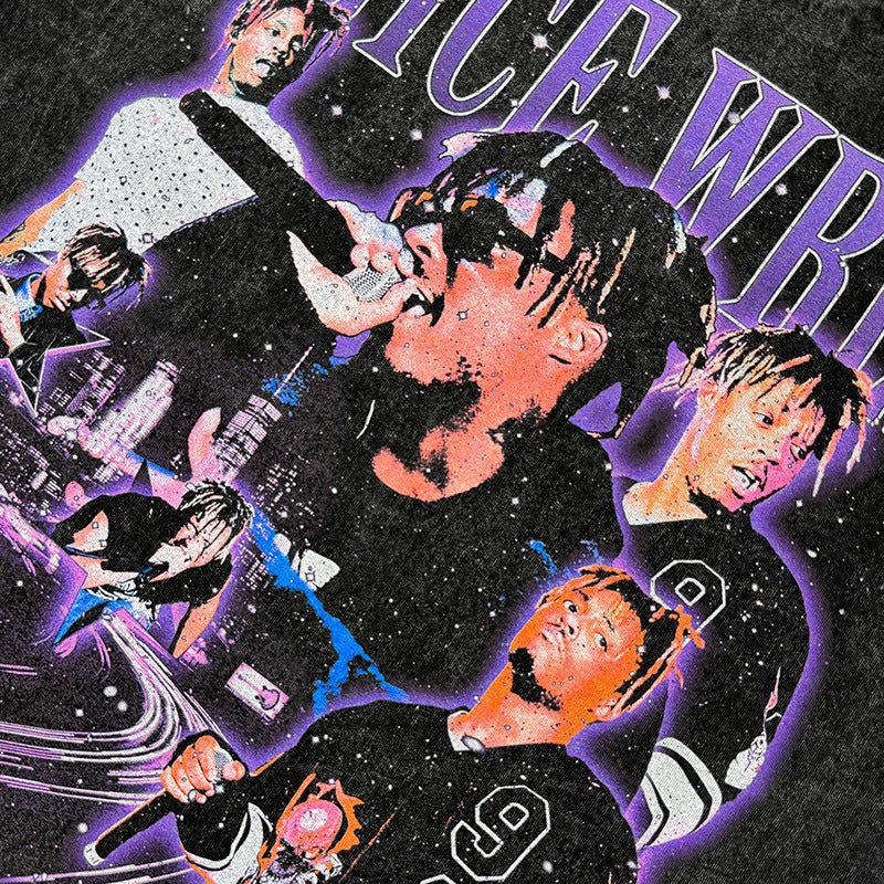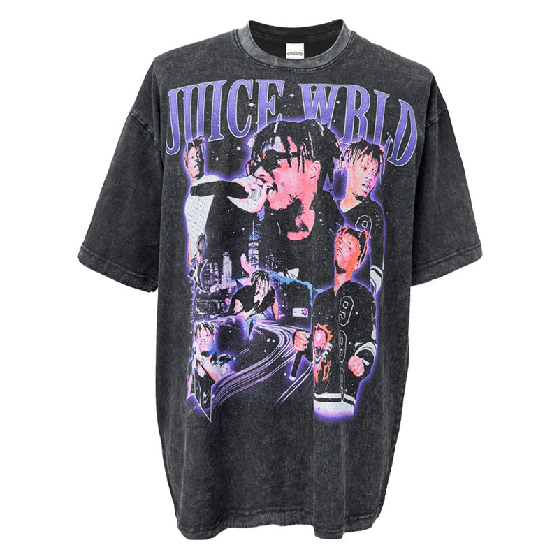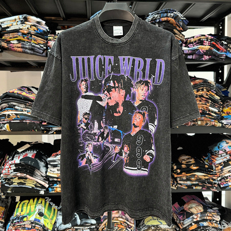 Vintage JUICE WRLD Printed Short Sleeve T-Shirt Washed Vintage Heavy Cotton Small Neckline T