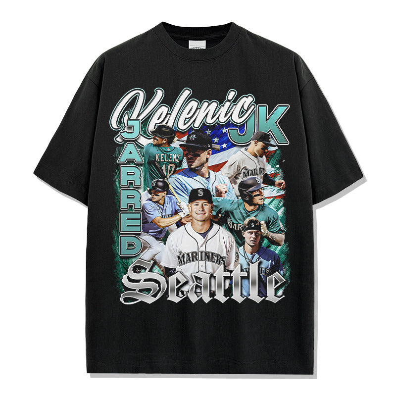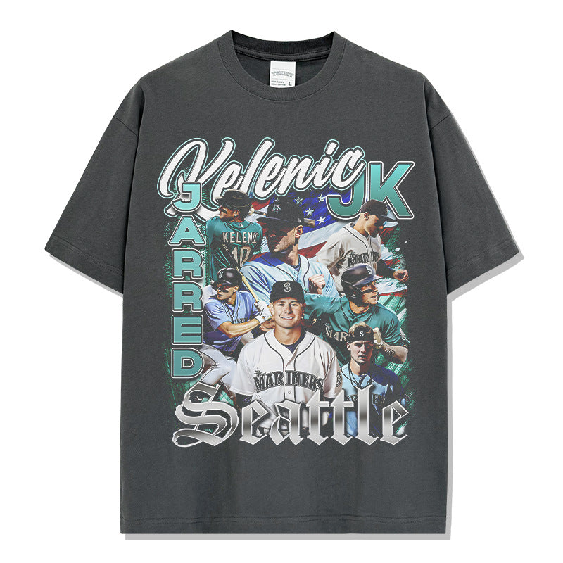 Vintage Kelenic Printed Short Sleeve T-Shirt Vintage Loose Heavy Casual T