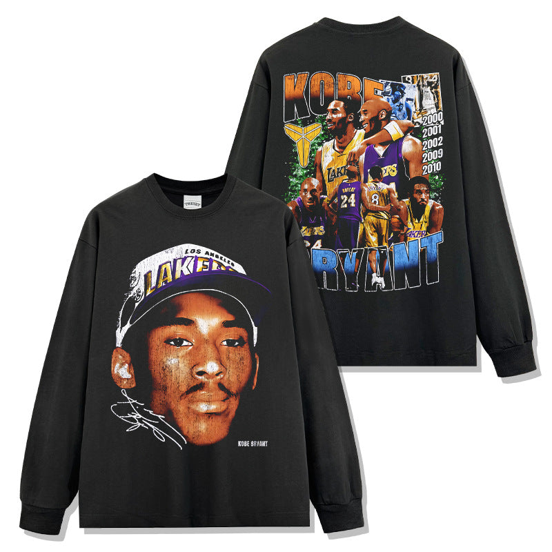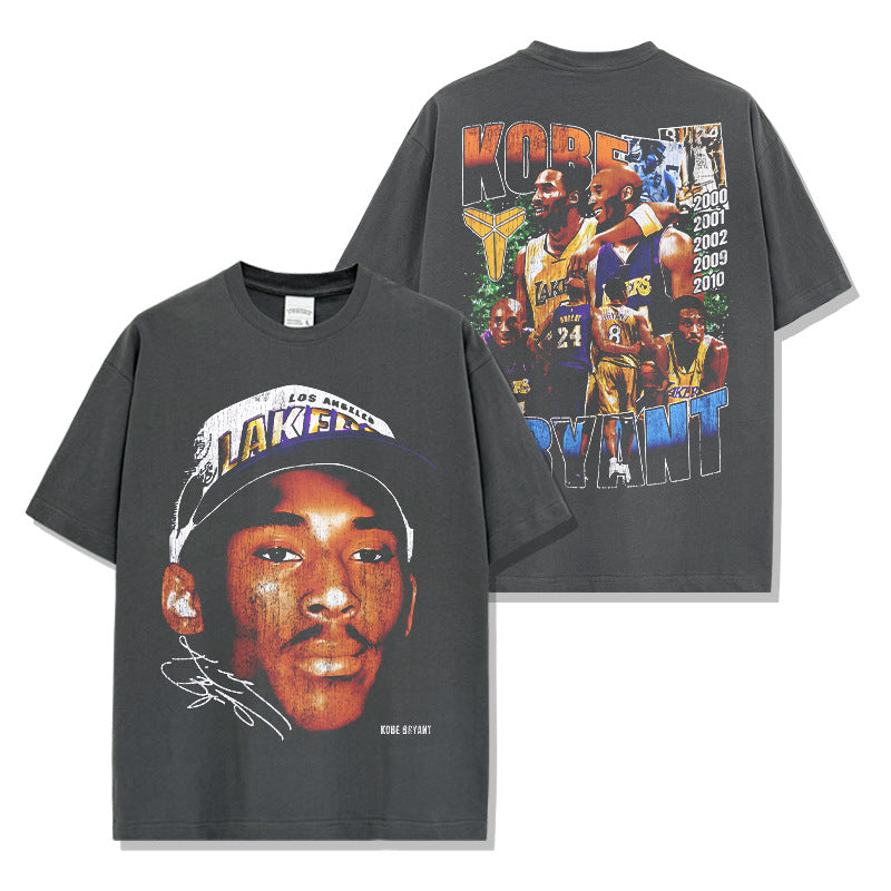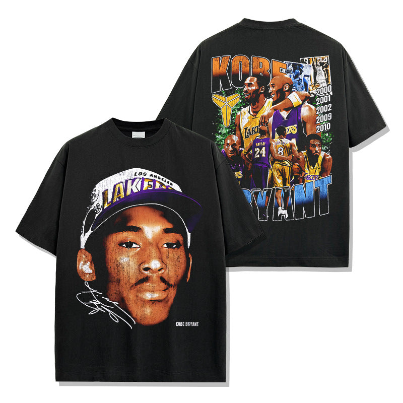 Vintage Kobe KOBE double-sided print washed short-sleeved T-shirt crew neck heavy hooded sweater