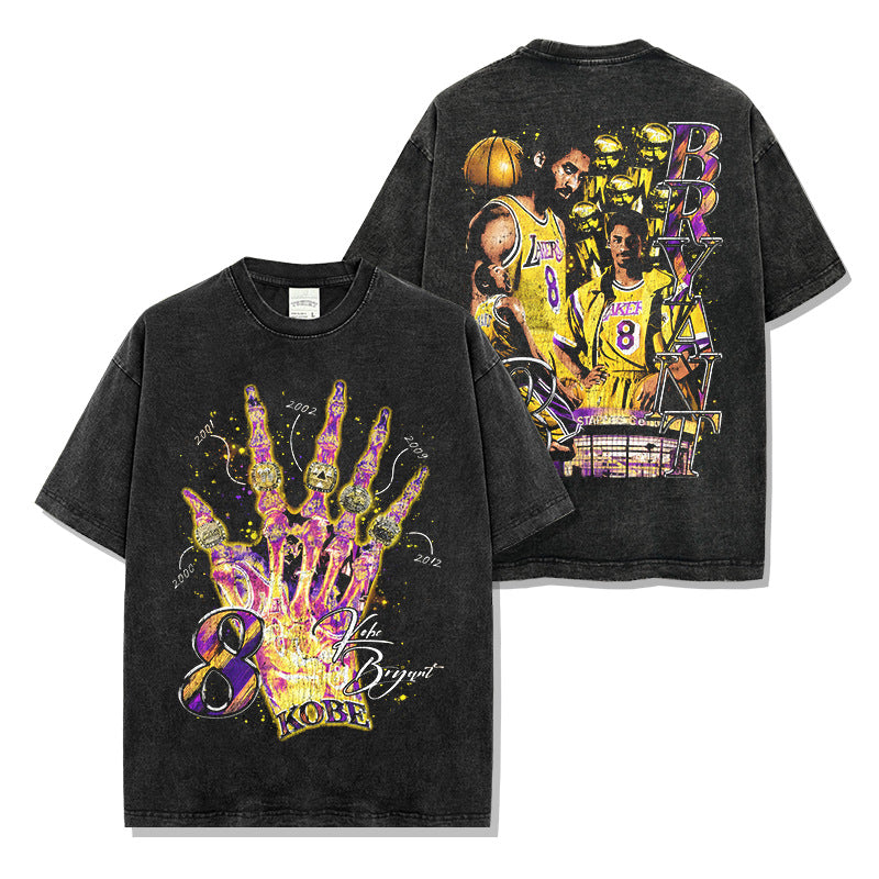 Vintage KOBE Kobe Printed Short Sleeve T-Shirt Washed Long Sleeve Loose Casual Hooded Sweater