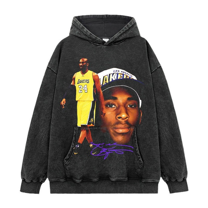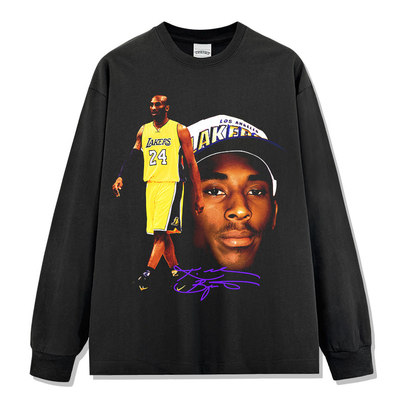 Vintage KOBE Kobe Printed Short Sleeve T-Shirt Washed Old Long Sleeve Loose Hooded Sweater