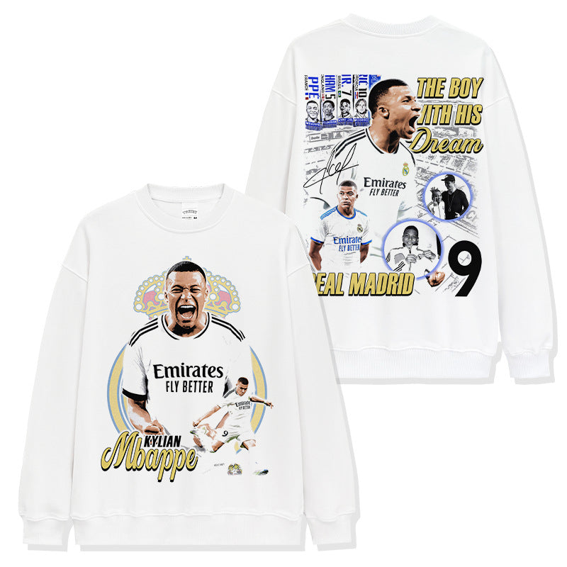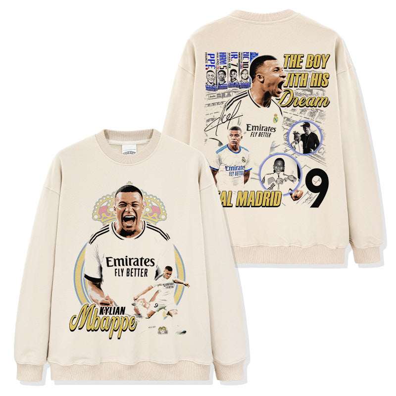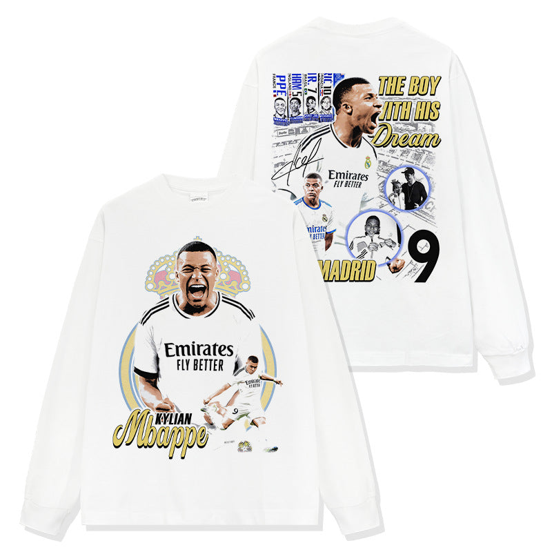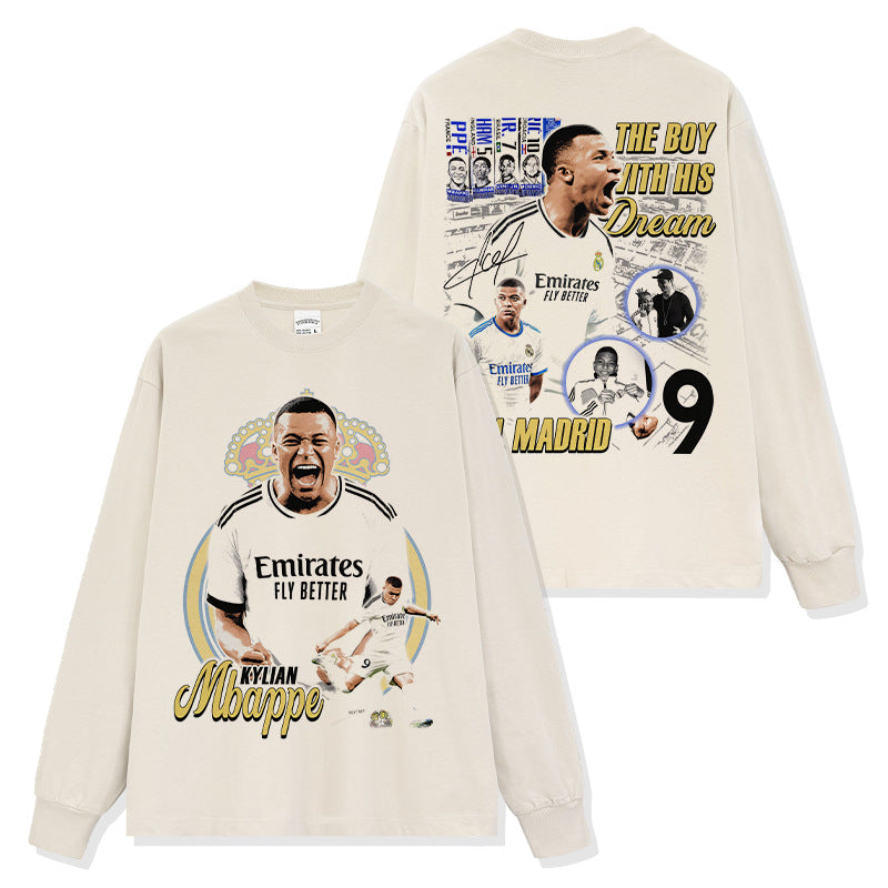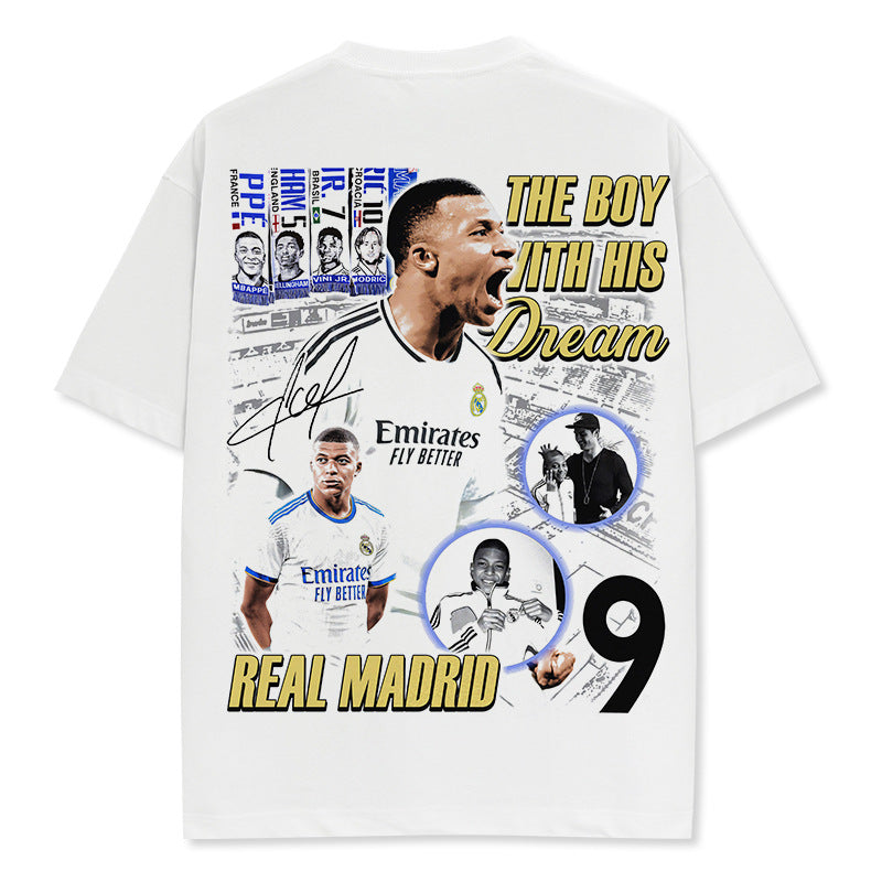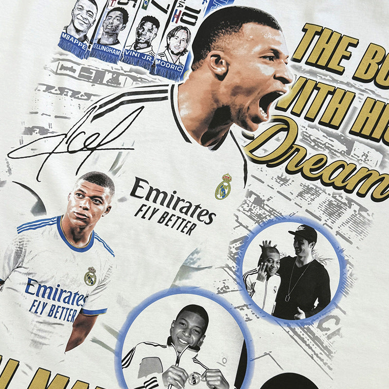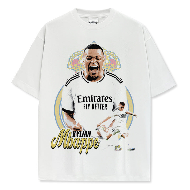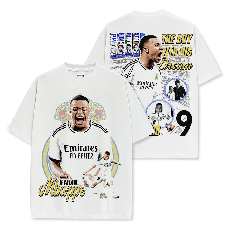 Vintage Kylian Mbapp¨¦ double-sided printed t-shirt washed round neck heavy cotton t