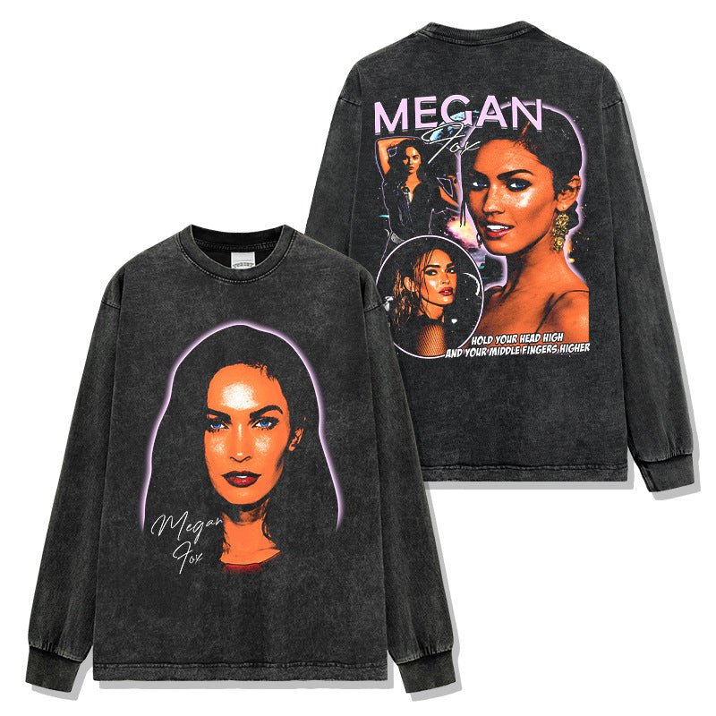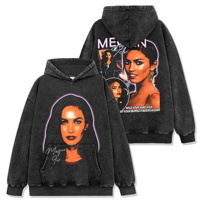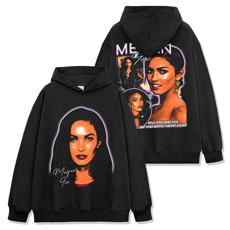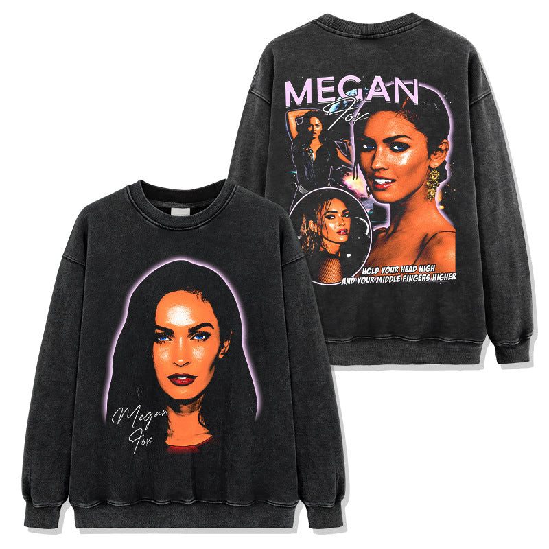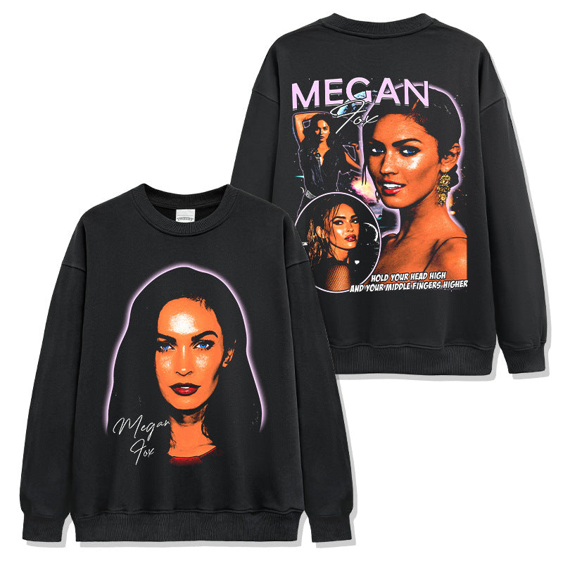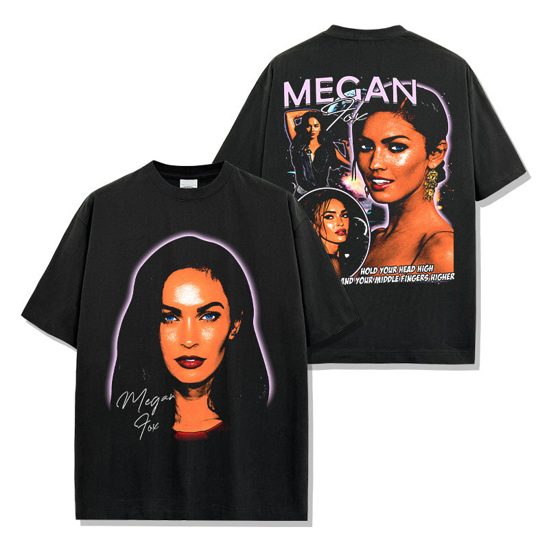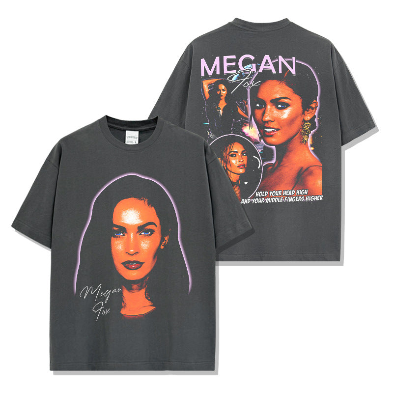 Vintage Megan MEGANFOX Printed Short Sleeve T-Shirt Loose Heavy Crew Neck Hooded Sweater Men's Trend