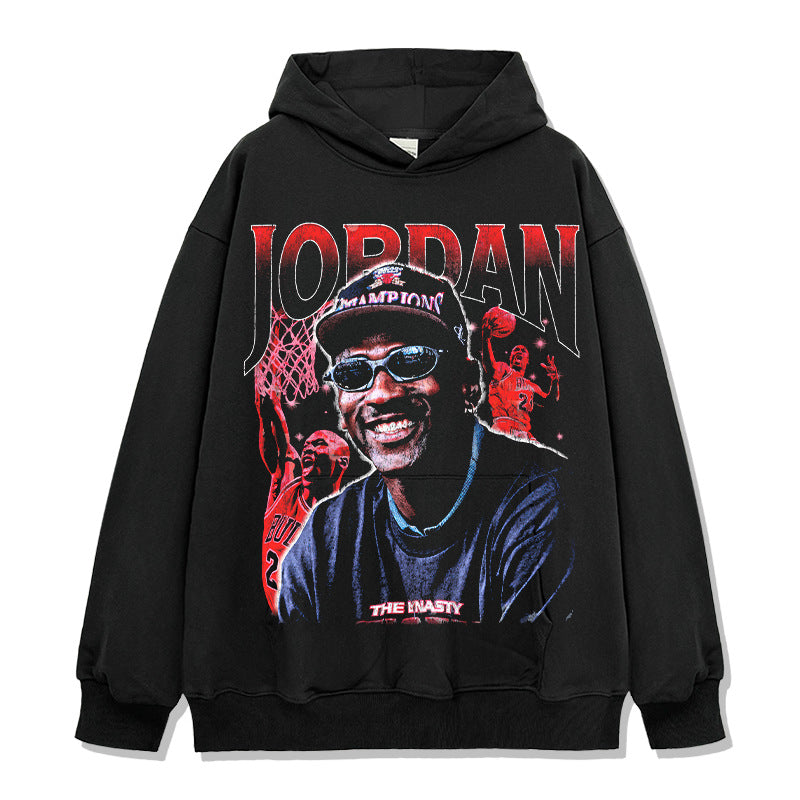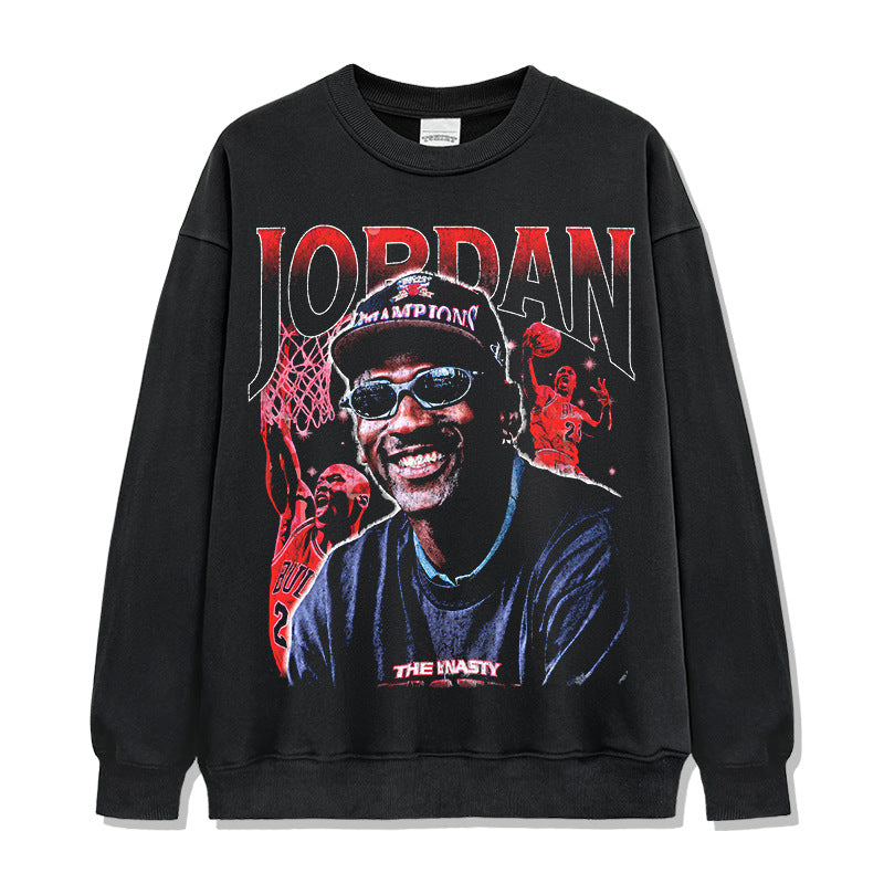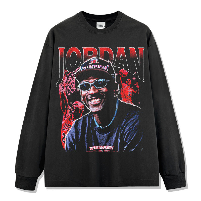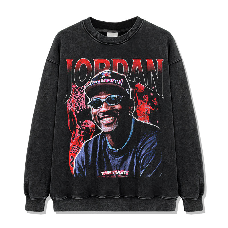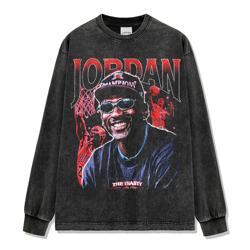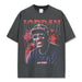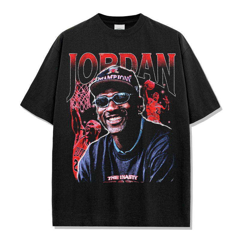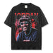 Vintage MJ Flying Printed Short Sleeve T-Shirt Vintage Washed Loose Crew Neck Heavy Pure Cotton Tide T