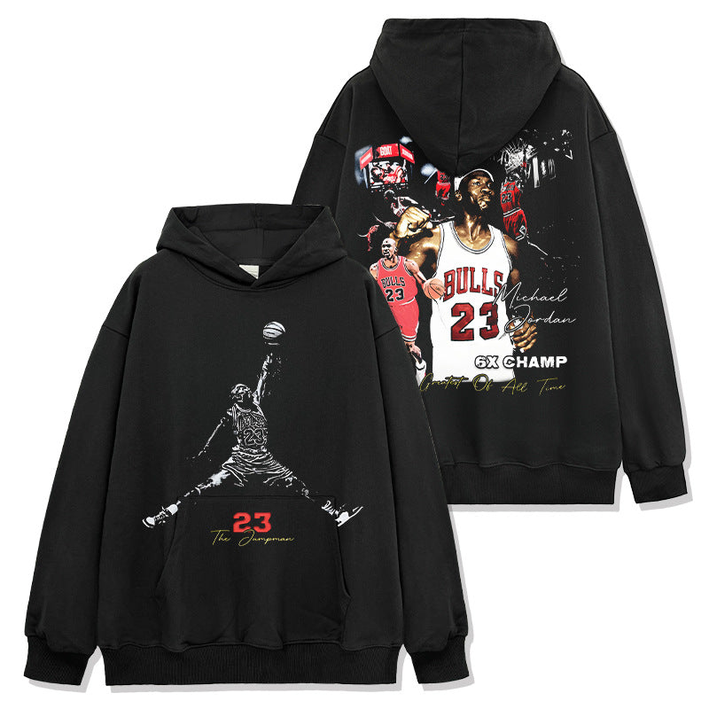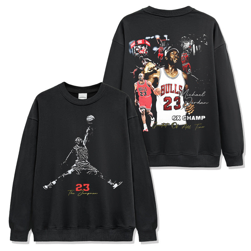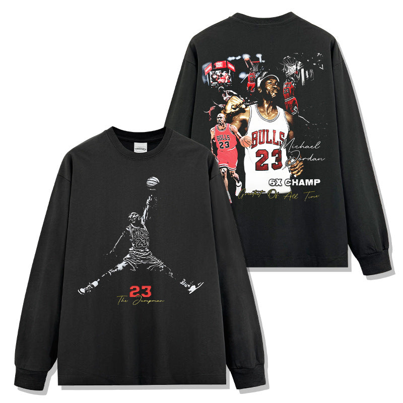 Vintage MJ Trapeze Double-Sided Printed Short Sleeve T-Shirt Heavy Long Sleeve Crew Neck Hooded Sweater