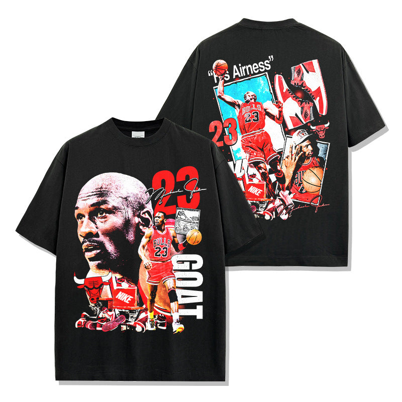 Vintage MJ Trapeze Double-Sided Printed Short Sleeve T-Shirt Heavy Long Sleeve Crew Neck Hooded Sweater Men