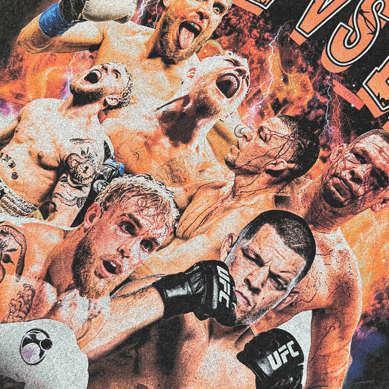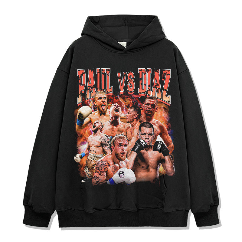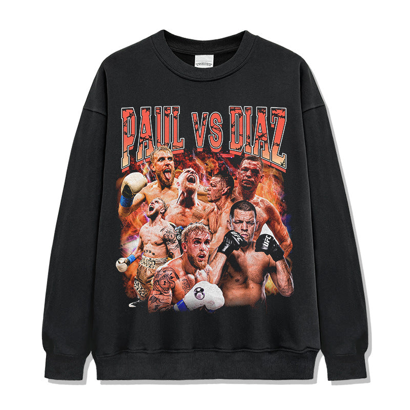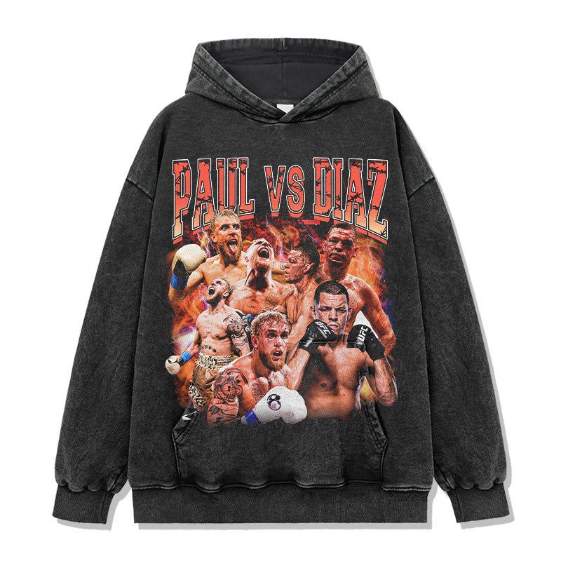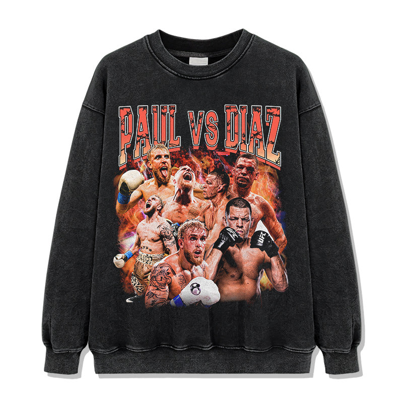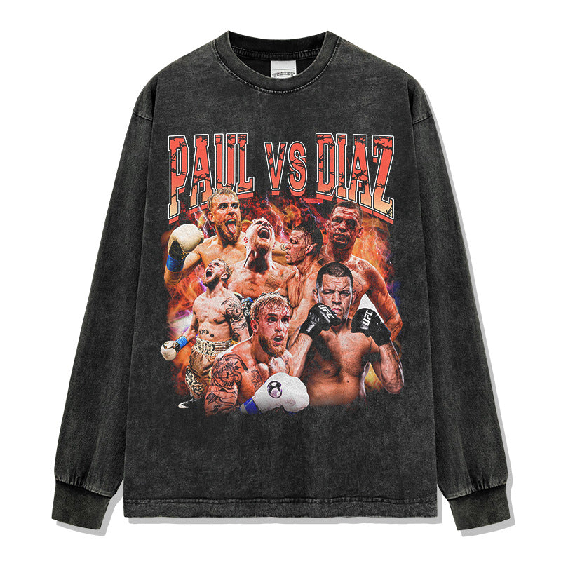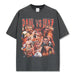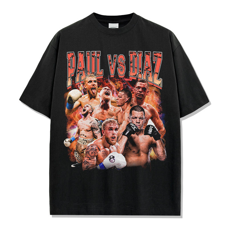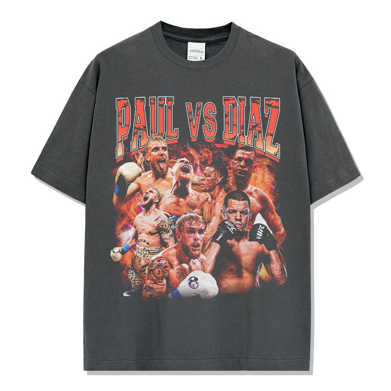Vintage Paul vs Diaz Printed Short Sleeve T-Shirt Washed Loose Heavy Cotton Small Neckline Tide T