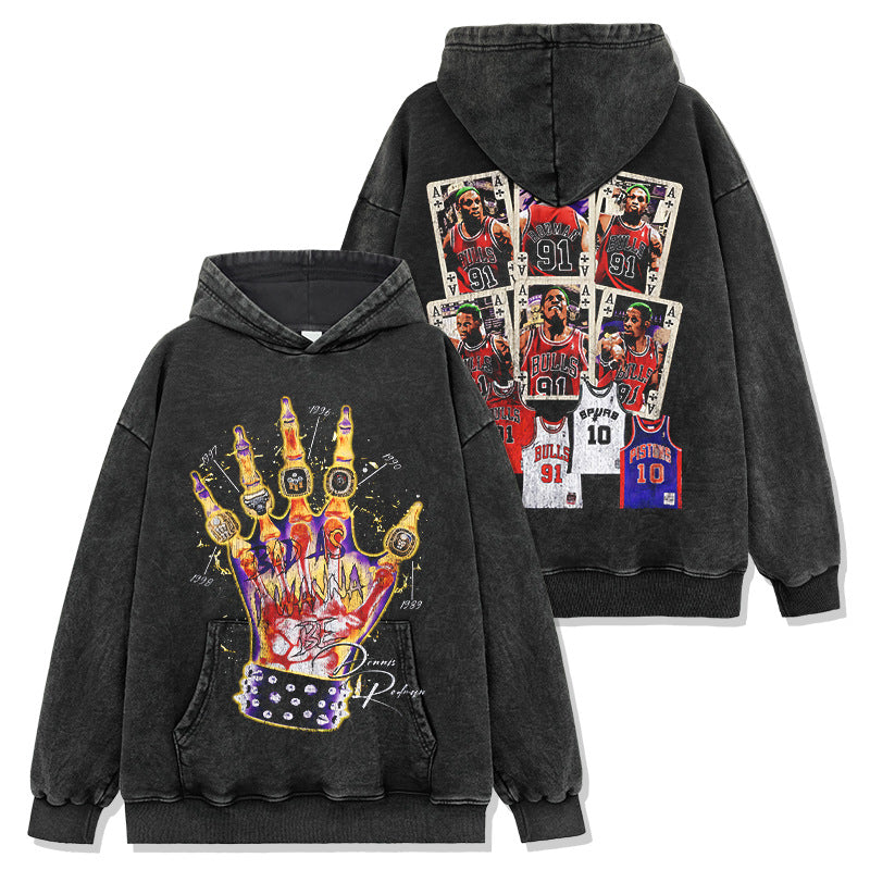 Vintage Rodman Double-Sided Printed Washed Short Sleeve T-Shirt Crew Neck Heavy Loose Hooded Sweater Men