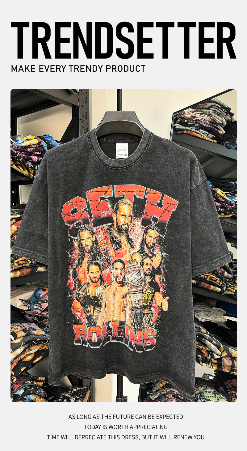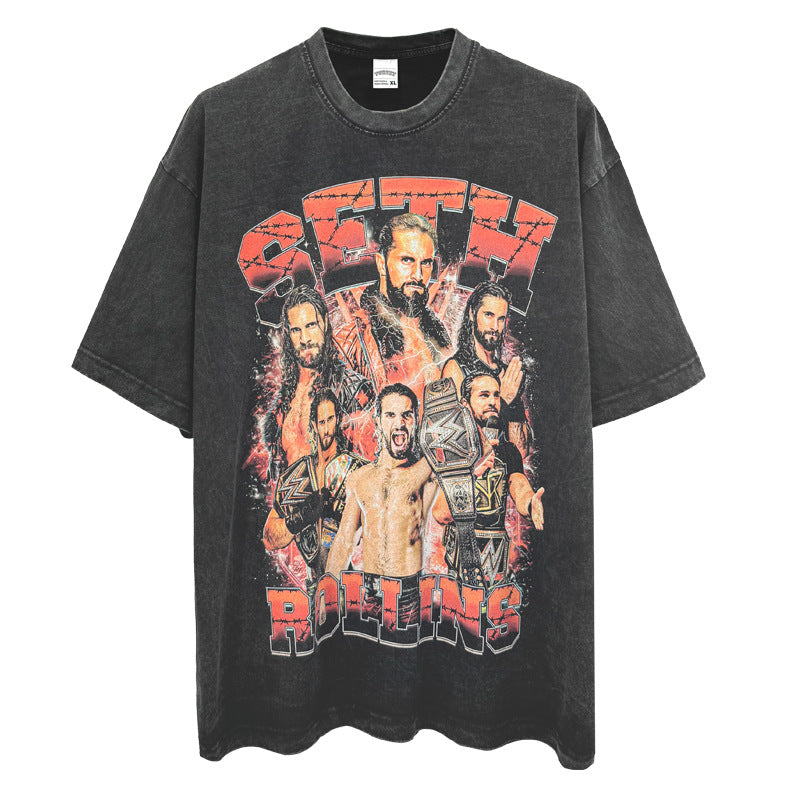 Vintage Seth Rollins Printed Short Sleeve T-Shirt Washed Heavy Cotton T
