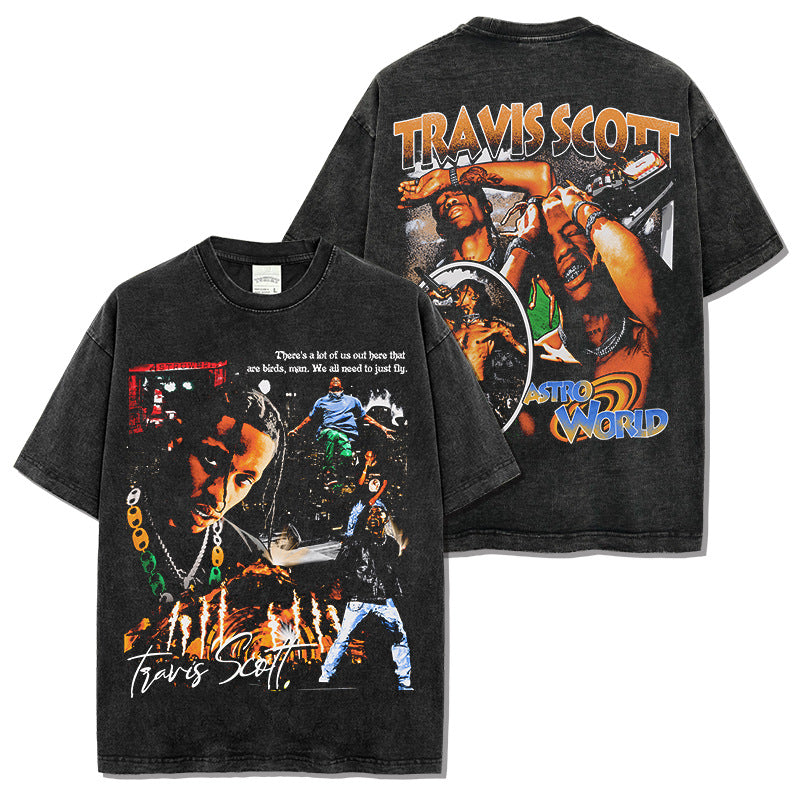Vintage Travis Scott Printed Short Sleeve T-Shirt Vintage Washed Loose Heavy Small Neckline