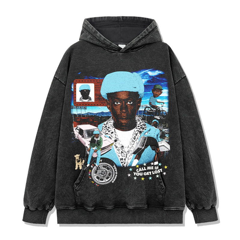 Vintage Tyler The Creator Printed T-Shirt Washed Long Sleeve Crew Neck Heavy Hooded Sweater