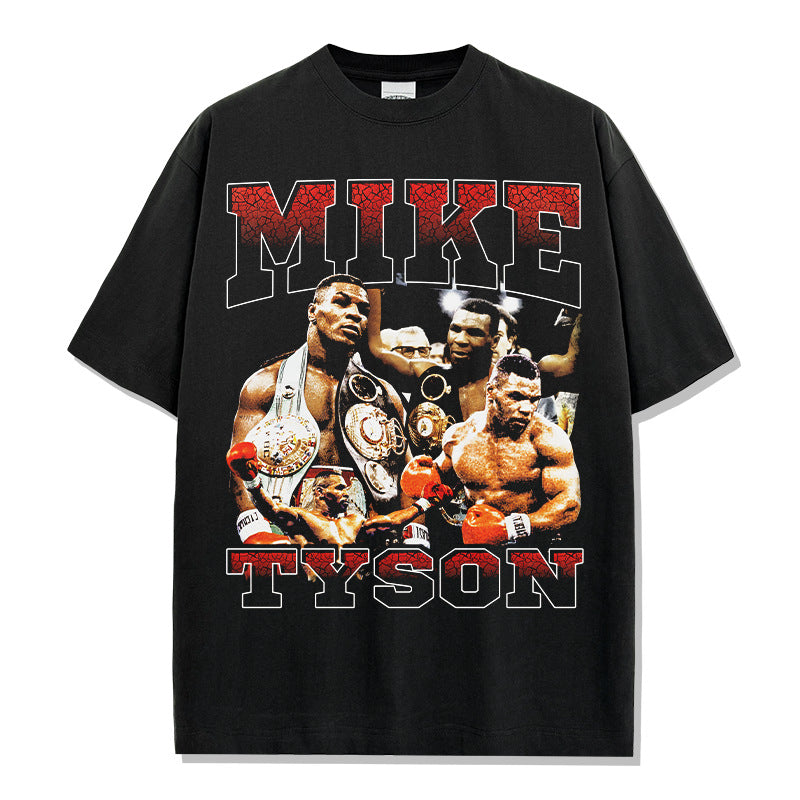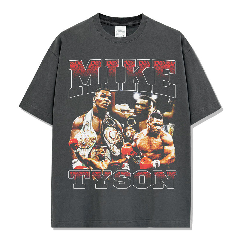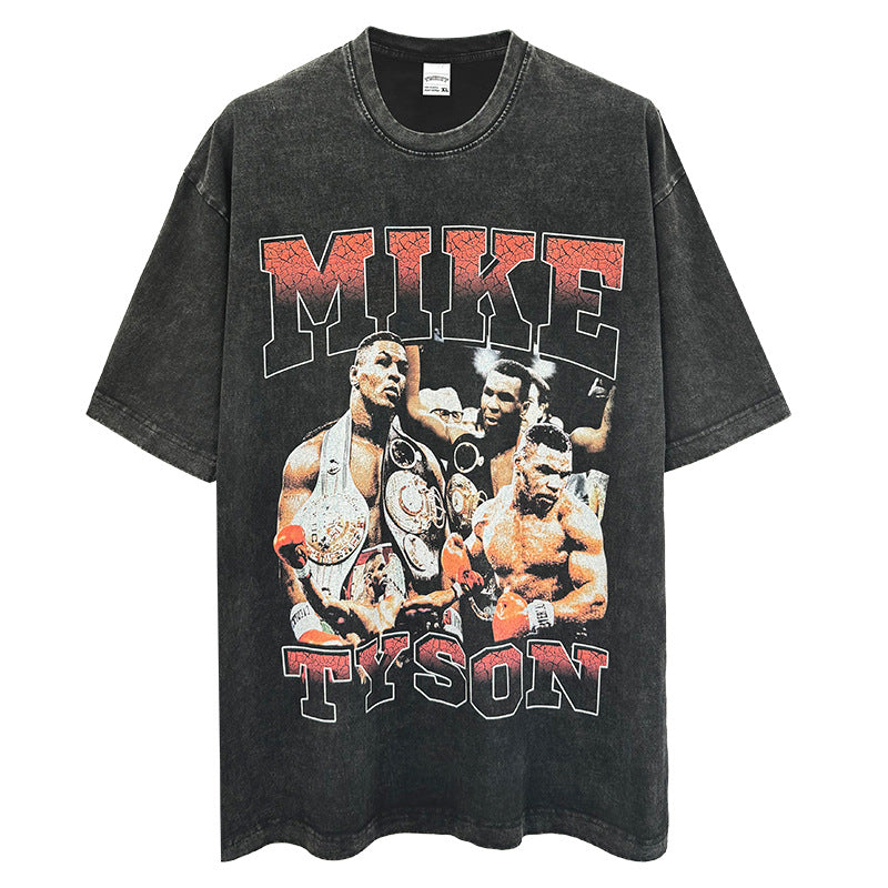 Vintage Tyson Boxer Tyson Printed Short Sleeve T-Shirt vintage washed heavy cotton trendy men t